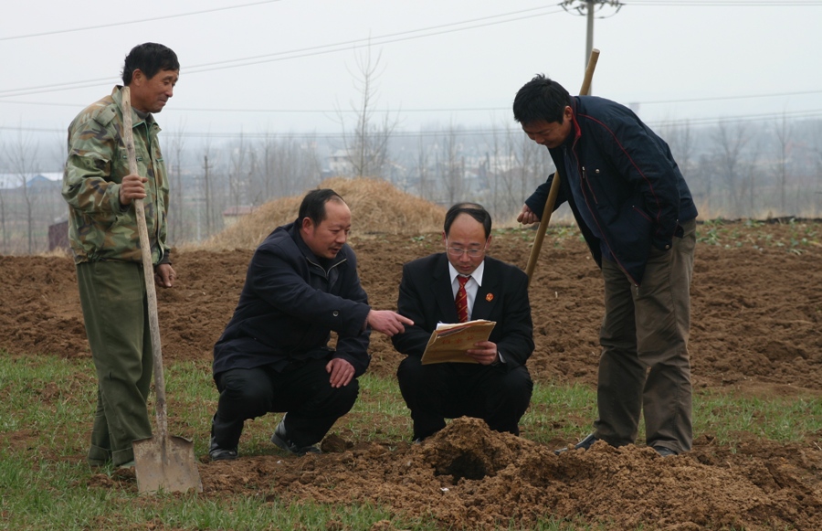 图为1月12日下午,该院法官在田间地头回访当事人。