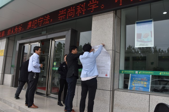 4月26日,为迅速落实南阳中院关于严厉敦促被执行人自觉履行法律文书确定义务的通告,桐柏法院执行干警们跑遍城区乡镇,奔赴大街小巷、把通告张贴在银行、超市、医院、社区、机关单位、学校、广场等人口集中的场所显眼位置上,吸引了很多群众前来观看,向民众进行宣传教育,对被执行人发出警示震慑。