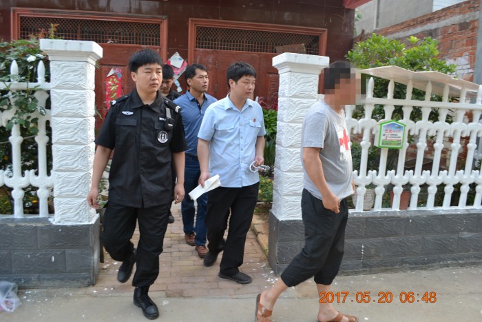 6:53分,第六名“老赖”家大门紧闭,任凭干警怎么敲门,老赖就是躲在屋里不开门,干警们很是着急,在等待十几分钟后,老赖的家人拿着棍棒气势汹汹的和干警们起了冲突,为了防止场面失控,有经验的干警经过耐心劝解,家人不再阻挠,表示事后会主动到法院协商履行的。
