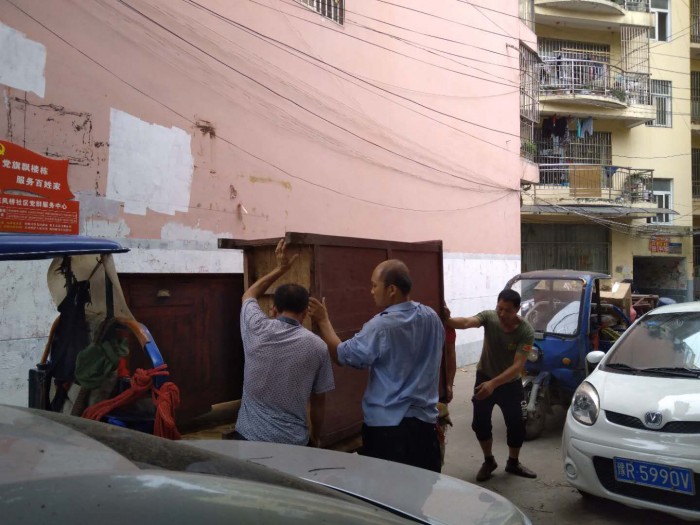 案件进入执行程序,该房屋经评估拍卖成交,但盛某某无视腾房公告,拒不搬出家居用品,多次协调未果。经周密部署安排,执行干警前往现场采取强制腾房措施。执行干警对室内物品逐屋、逐物进行清点,登记造册,并全程录像,然后组织搬家公司将屋内物品搬至指定地点。腾房工作开始约半小时,警戒线附近出现了大量围观的居民。紧急情况处置组干警在确定围观人员不是案件当事人后,将法院现有的执行强制手段和对“老赖”采取的上失信、上限高等措施进行现场讲解,并宣传桐柏法院是以京东网为平台进行司法拍卖,告知群众可以登录微信京东拍卖小程序查看法院拍品。