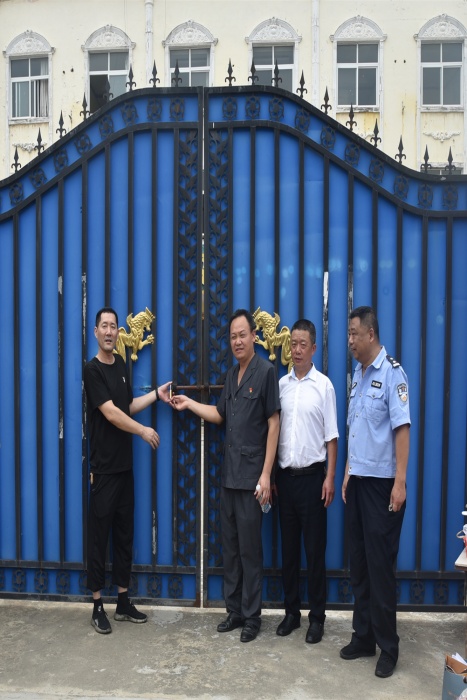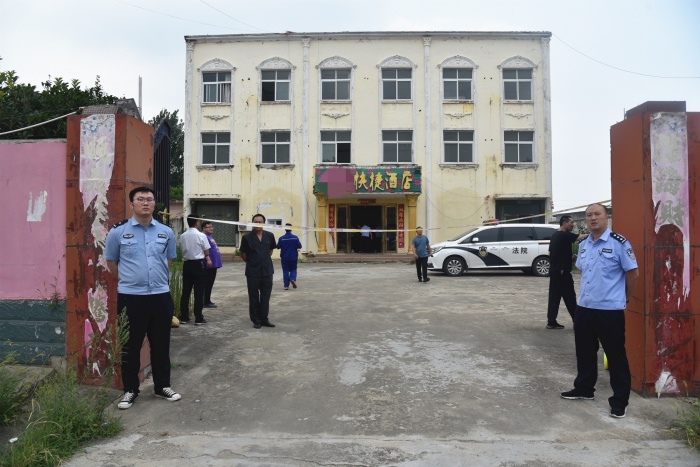 当日,执行干警到达现场后有序进行现场警戒,稳控现场环境,仔细清点登记,妥善安置搬运,两小时内就将占地1700平方米、建筑面积989.54平方米的三层原快捷酒店腾置干净,申请人为腾空房屋换上新锁,房屋顺利完成交接。