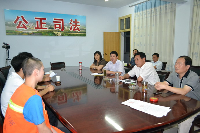 8月1日下午,南阳市中级人民法院副院长王定带领少审庭法官一行驱车100余公里冒雨赶到桐柏县,对一起故意伤害犯罪案件中的两名在读高中生被告人开展帮教工作。桐柏县法院院长柳殿奎、副院长杨英波,以及团县委、学校等有关部门同志共同参加。