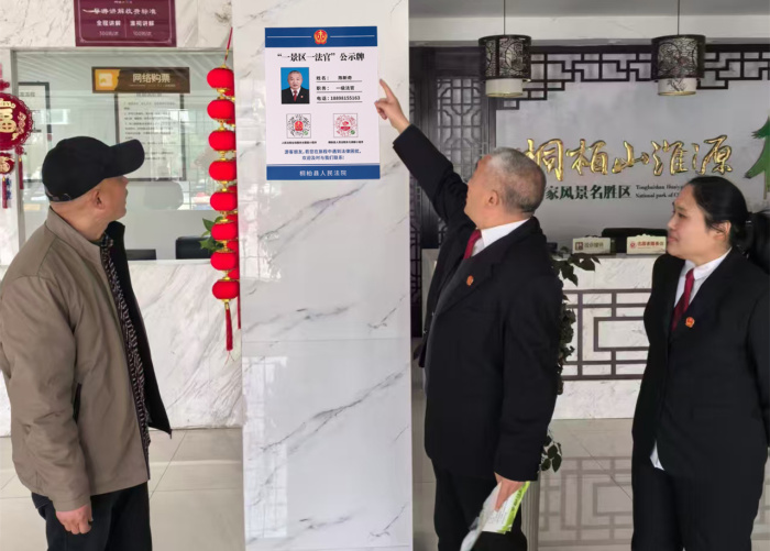 活动现场,桐柏县人民法院在辖区桐柏山淮源风景名胜区、桐柏革命纪念馆两大4A级景区,同步设立景区法律服务站,并在游客服务中心、景区服务大厅等群众易接触、视线集中的醒目位置,统一悬挂“一景区一法官”法律服务公示牌,实现景区法律服务全覆盖、无死角。