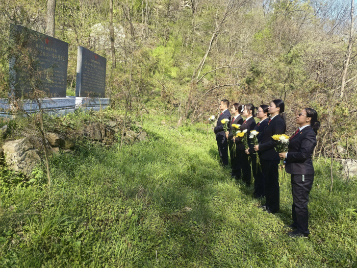 为深切缅怀革命先烈、传承红色基因,进一步深化党性教育、筑牢政治忠诚,2026年4月1日,在清明节来临之际,桐柏县人民法院政治部党支部组织全体党员赴桐柏县城郊乡吴湾村新四军养伤洞、无名烈士陵园,开展“祭英烈・守初心・铸法魂”主题党日活动。