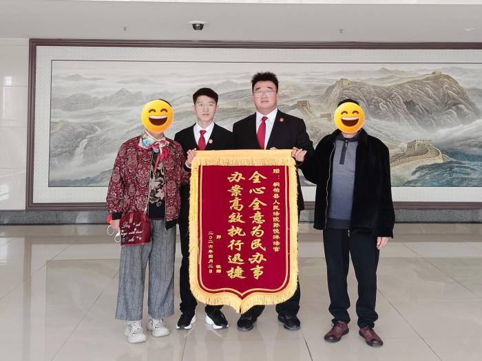 “我儿子在部队保家卫国,家属的权益法院这么用心守护,真的太感谢你们了!” 4月2日上午,桐柏县人民法院成功执结一起涉军执行案件,用司法利剑成功维护军人军属合法权益。拿到案款的郭某夫妇,特意定制了锦旗,亲自送到桐柏法院执行局。