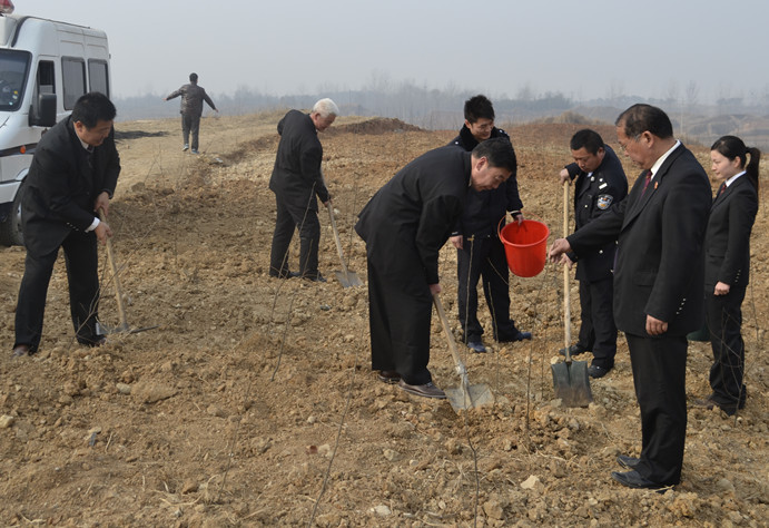 3月14日,桐柏县法院组织20余名干警,来到县里划定的植树点参加义务植树,干警们挥锨抡镐干得热火朝天,有的扶苗,有的填土,有的浇水,全力投入到植树活动中。在大家的共同努力下,百余棵树苗很快就傲然挺立,给荒山平添新绿,为建设生态城镇又种下一片绿色的希望。
