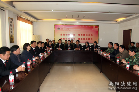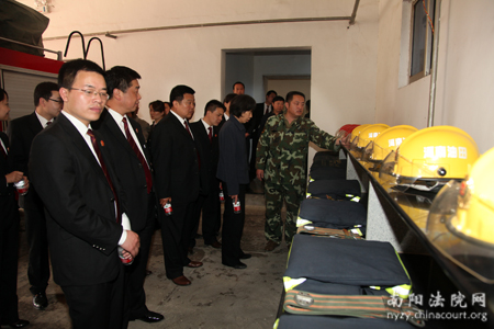 4月22日上午,河南省南阳中院到桐柏县法院埠江法庭下基层锻炼的两批干警和院青工委、团委全体成员利用周末休息时间到位于桐柏县埠江镇的双河油田消防大队参观学习。南阳中院党组成员杨振敏、机关委副书记郭彤影,桐柏县法院院长刘书旺一同参加活动。